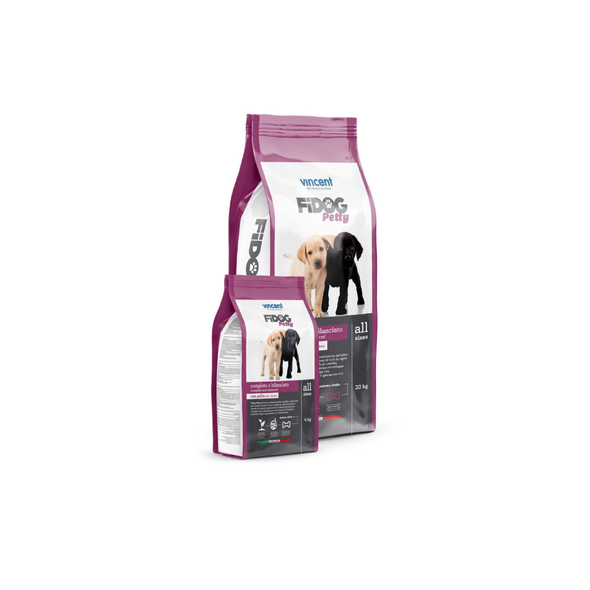 Fidog Pettyè un alimento completo e bilanciato per cuccioli di cane di tutte le razze. Abbiamo ideato questo alimento appositamente per soddisfare i bisogni nutrizionali dei cuccioli di cane di tutte le taglie durante il periodo della crescita. La perfetta cottura degli amidi e l’equilibrio delle fibre assicurano la digestione, l’assorbimento dei nutrienti e il benessere intestinale. L’elevato contenuto di proteine (27%) permette l’appropriato ed armonico sviluppo della massa muscolare. Inoltre la presenza di calcio e fosforo, assieme all’aggiunta di vitamina D3 garantisce la robustezza di denti e ossa.